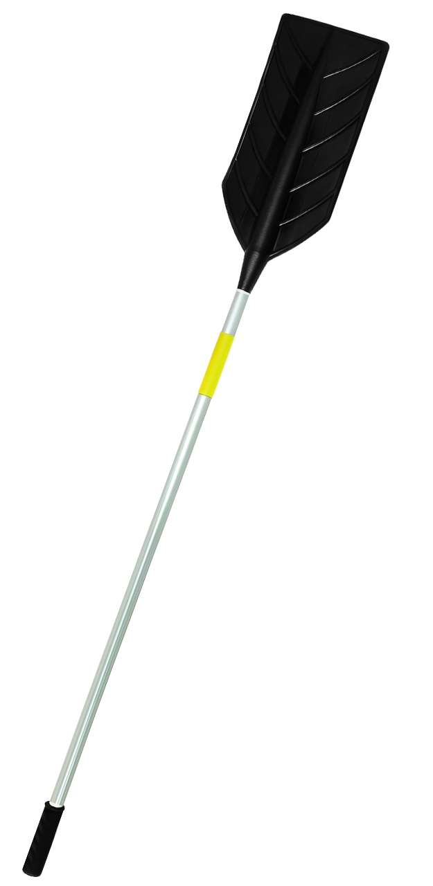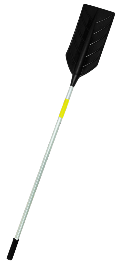 Mango de aluminio anodizado, peso ligero y banda reflectante. Crucial para el uso profesional